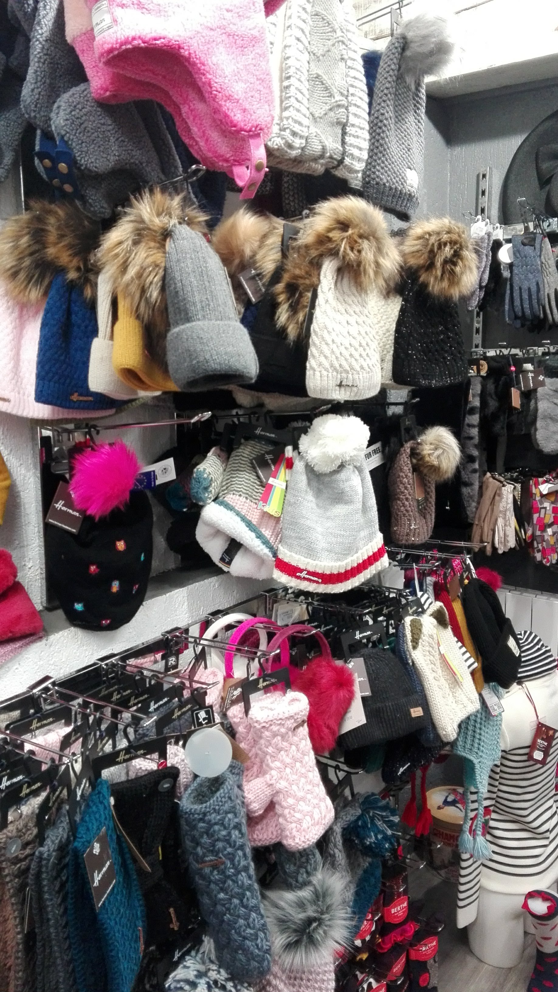 Des beaux chapeaux et bien plus, chaussettes, foulards, gants. Belle qualité. J'adore