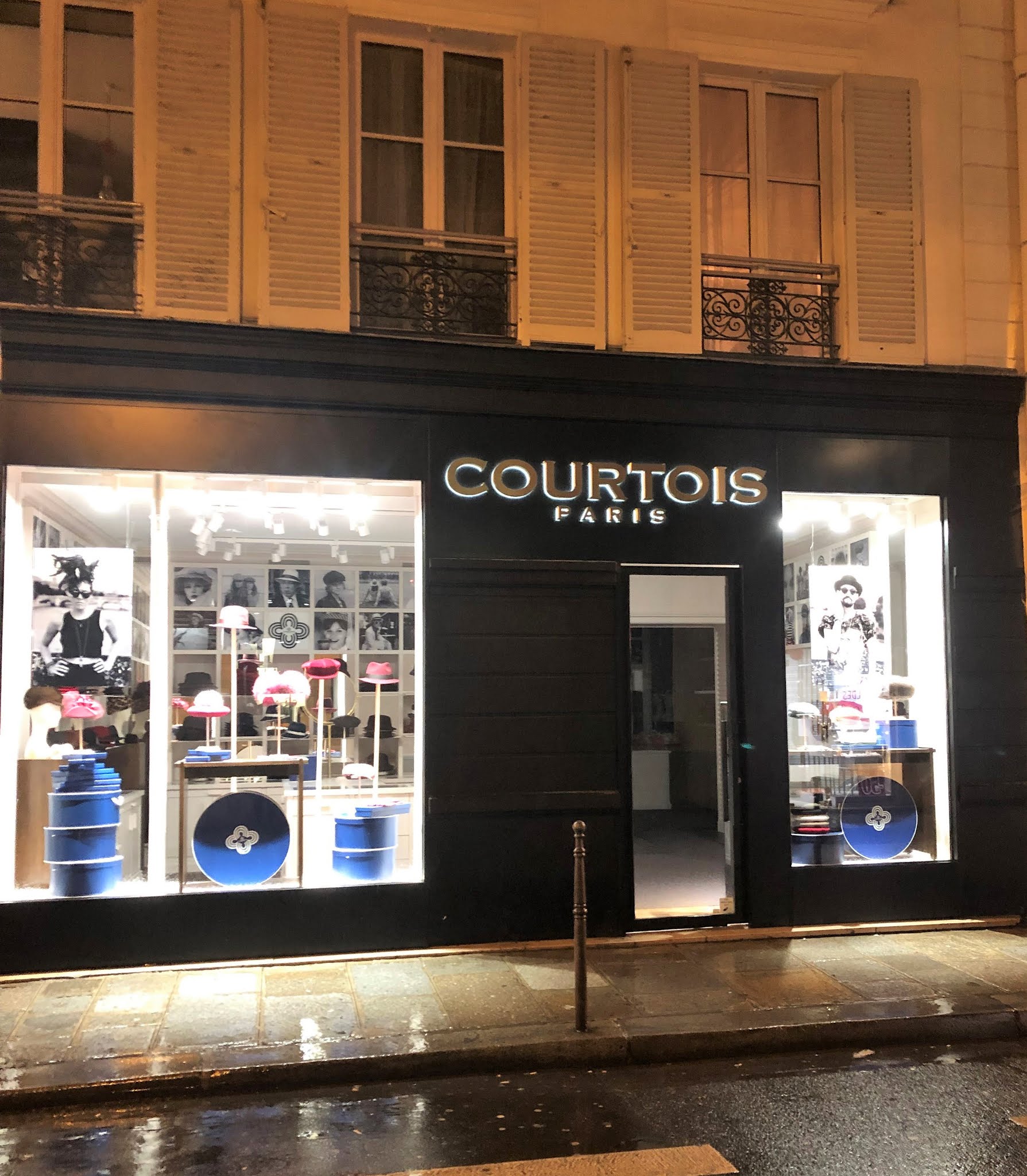 La boutique Courtois Paris illumine la rue de Sévigné une fois la nuit tombée. Allez y sans hésiter, en plus de la déco du magasin qui frappe tout de suite, les vendeurs sont très accueillants et de bons conseils, et les chapeaux sont vraiment magnifiques (gros coup de cœur pour le modèle Babylone) !