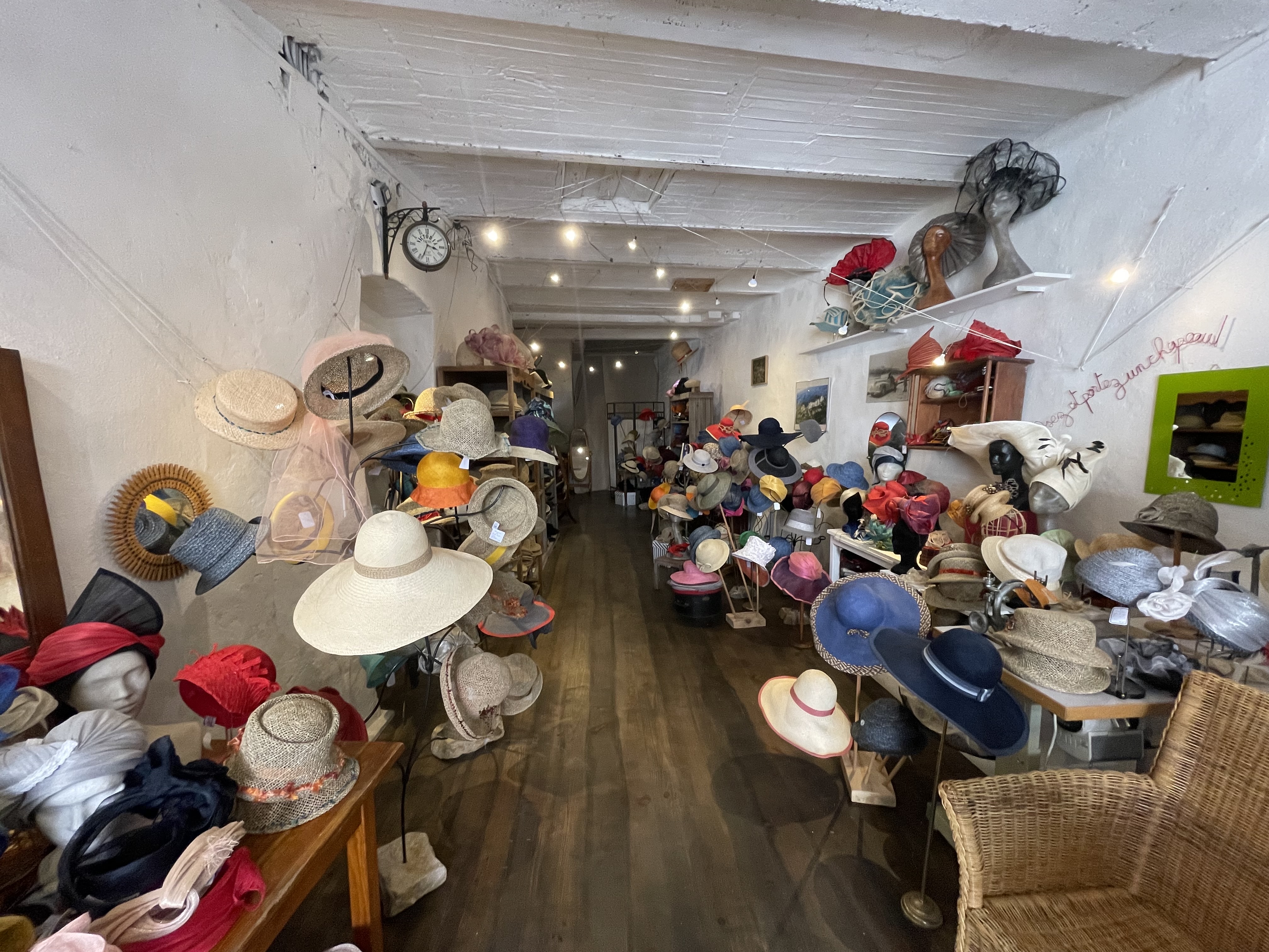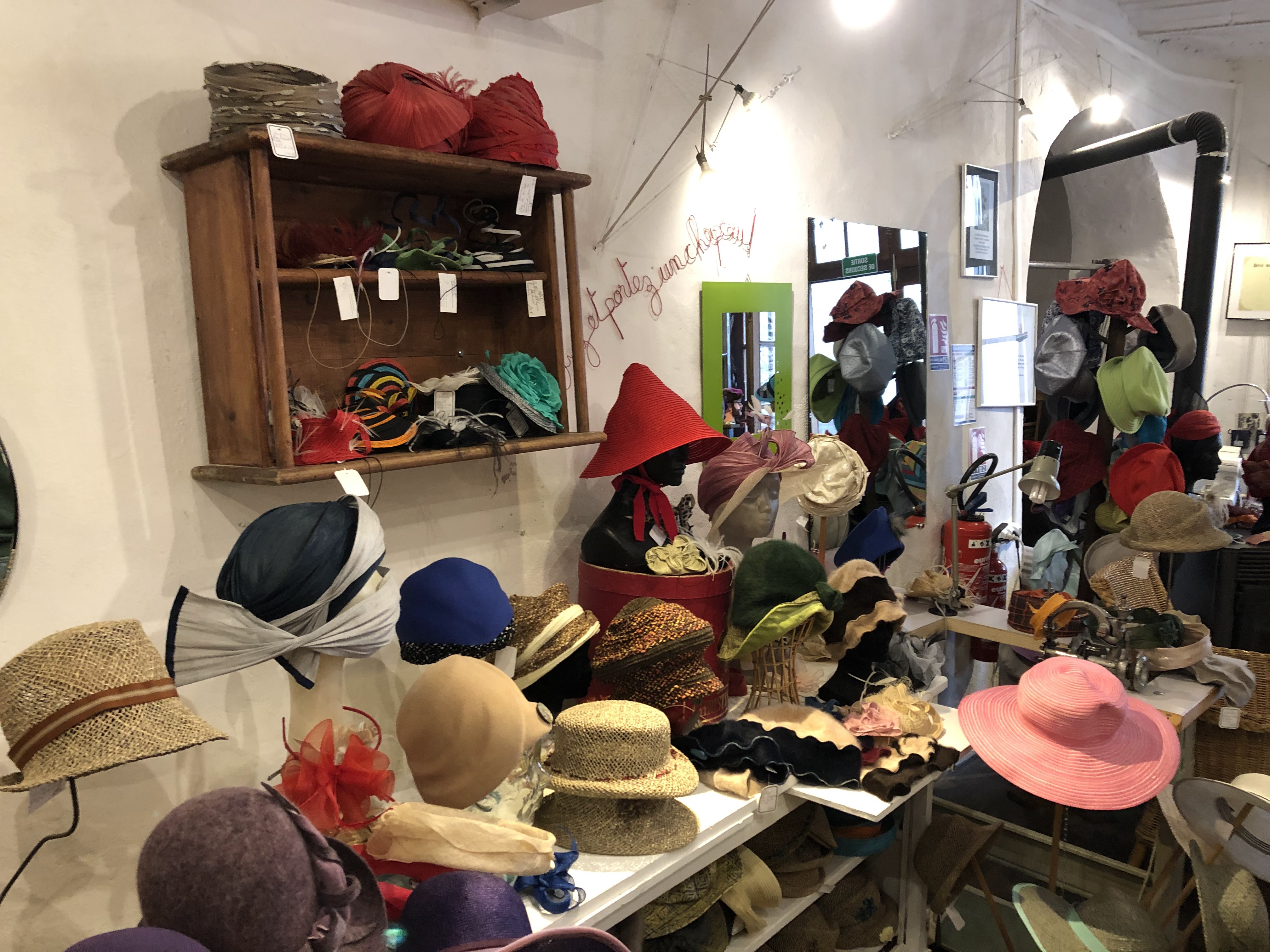 Une boutique incroyablement insolite dans un charmant village . Tous les chapeaux sont fabriqué sur place.