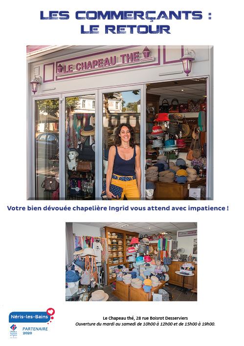 Voici toutes les informations sur le Chapellerie Le Chapeau Thé qui ce trouve au 28 Rue Boisrot Desserviers, 03310 Néris-les-Bains (03). Sur cette fiche vous trouverez les photos, l'adresse, les horaires d'ouverture, le numero de téléphone et les avis clients.Vous pouvez églement rédiger un avis si vous le souhaitez en bas de page.
